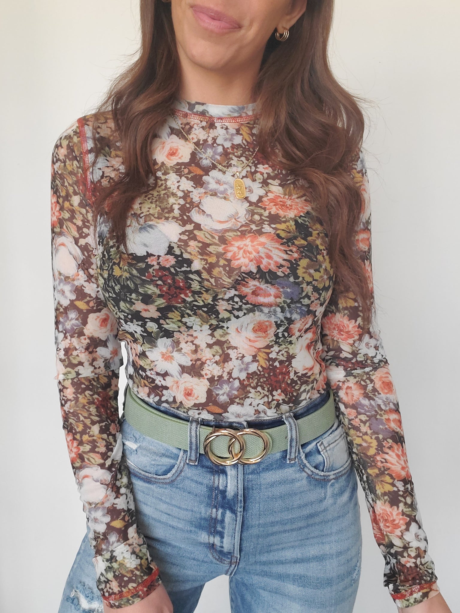 Sheer Floral Crew Neck